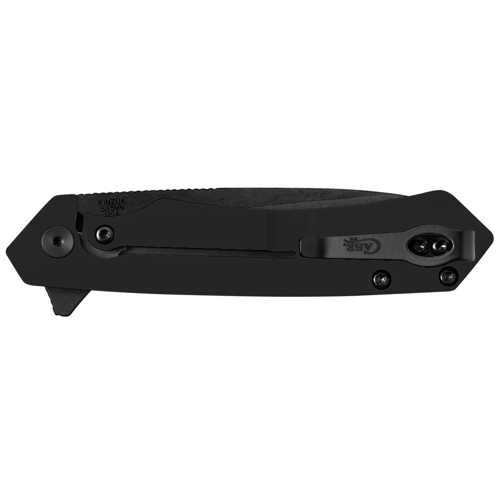Crafted with a lightweight anodized aluminum handle that showcases a triple-faceted face, the Kinzua® ensures both strength and style. The knife features DLC-coated hardware, enhancing corrosion resistance and providing a sleek, tactical look. Its flipper design enables quick and reliable deployment—simply flick your index finger, and the blade snaps open smoothly on a precision ball bearing pivot.