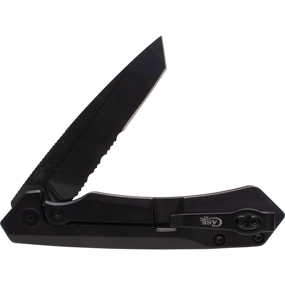 Mission Series Black Anodized Aluminum MagnaCut Tanto DLC-Coated Serrated Blade Kinzua®