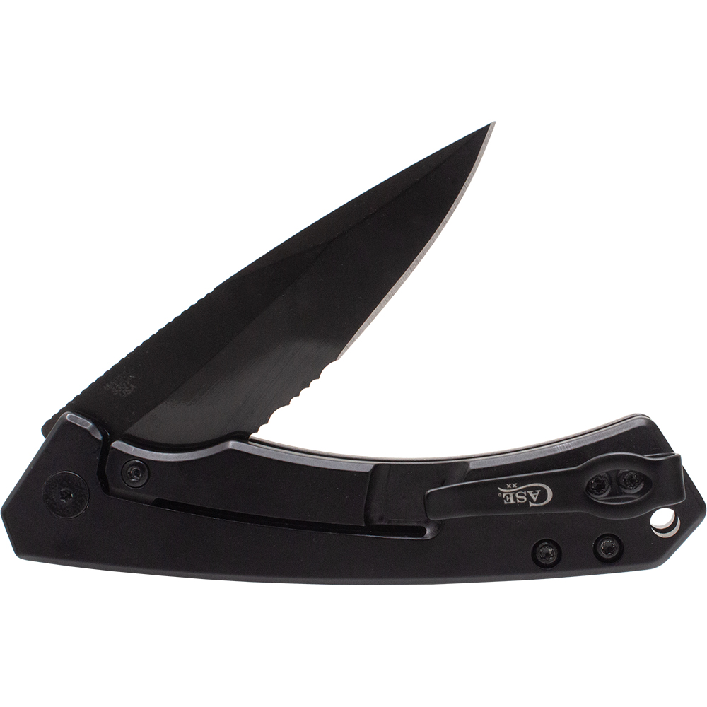 The black anodized aluminum handle offers lightweight durability, while the textured G-10 inlay ensures a secure grip, even in the harshest conditions. Its flipper design allows for fast, one-handed blade deployment with a smooth ball bearing pivot, giving users immediate access when seconds count. The reliable frame lock mechanism keeps the blade securely in place during heavy use, providing confidence and safety in high-stress environments.