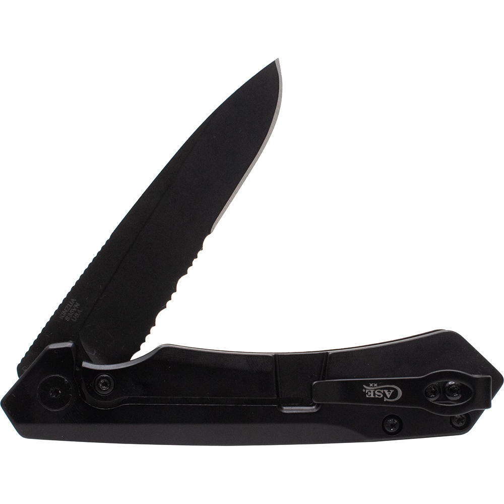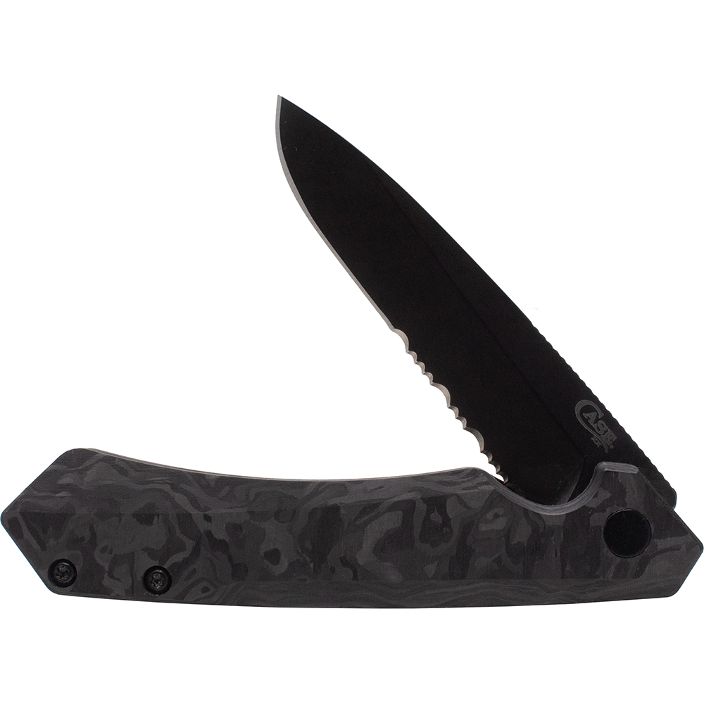 The Kinzua® knife represents a modern evolution in the Case® knives legacy. This innovative one-handed opening knife features a DLC-coated S35VN serrated spear blade, combining durability with cutting-edge design, perfect for the demands of military, law enforcement, and first responders.